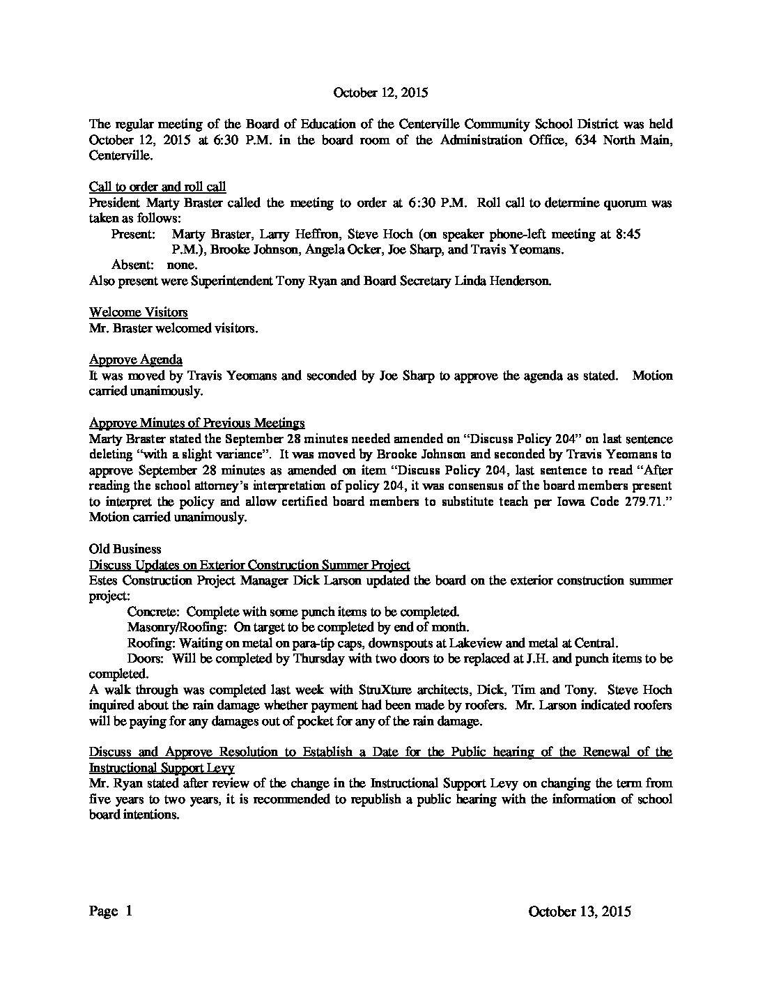 Centerville CSD Board Minutes 10.12.15 Centerville CSD Board Minutes 10.12.15 Skip back to navigation